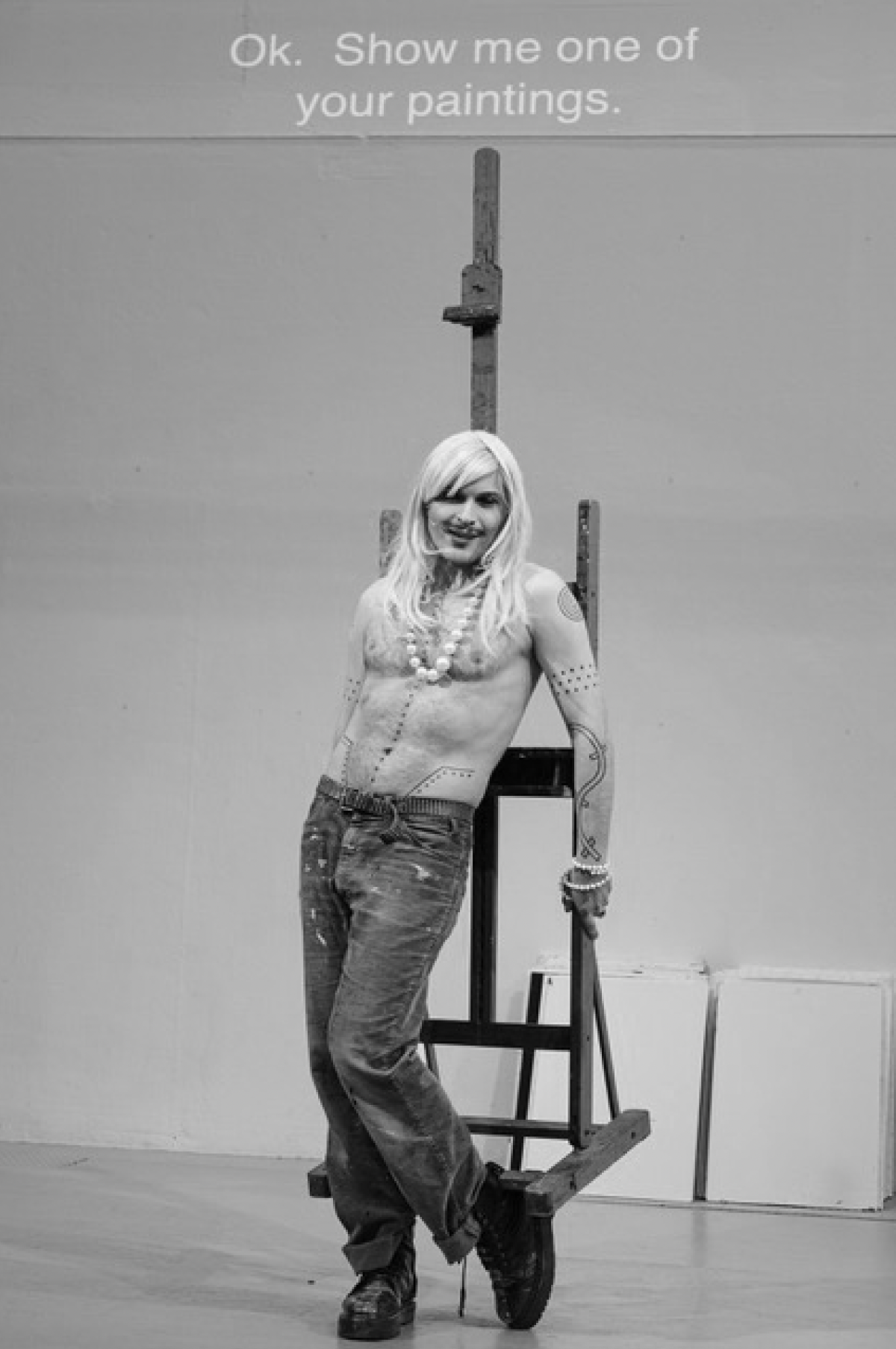 Que se passera-t-il? Personne ne le sait. Peut-être achèterez-vous un tableau. Peut-être ferez-vous partie de l’exposition. Peut-être ressentirez-vous quelque chose d’inattendu. Une chose est sûre: METCH, solo interactif, n’est pas une exposition que l’on regarde sans rien faire, c’est une expérience à vivre. “*METCH** (= Musique, Exposition, Texte, Chorégraphie) est un concert-exposition, une vente aux enchères, un exercice, une production excessive de peintures, un dialogue obsessionnel avec le public et, bien sûr, des chansons… Je sais que beaucoup de gens viennent à mes concerts parce qu’ils aiment mes chansons. Pour le meilleur ou pour le pire, ces personnes devront faire l’expérience et peut-être se heurter à ma relation très complexe et imprévisible avec le théâtre, la danse, la politique et l’art contemporain.”